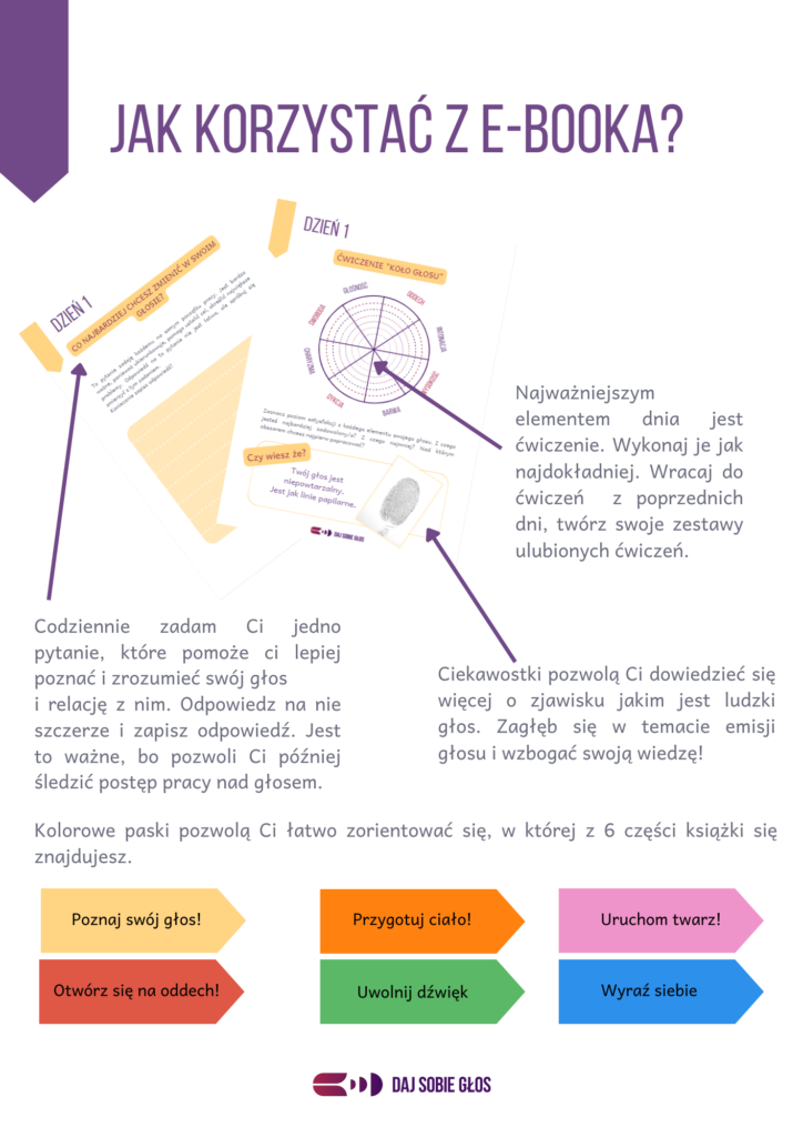 Ebook 30 dni dla głosu! to kompletny trening emisji głosu. Znajdziesz w nim ćwiczenia, pytania do refleksji, mnóstwo wiedzy i ciekawostek.